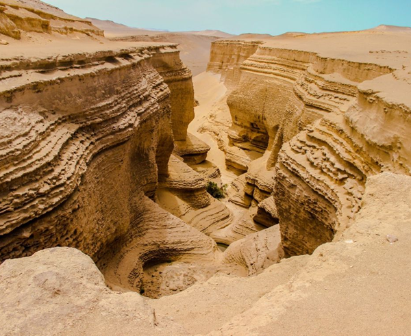07:00 am aprox, Salida al desierto de Ocucaje con destino al Cañón de los Perdidos, nos transportaremos por la Panamericana Sur, para luego tomar el desvío que nos llevará al Desierto de OCUCAJE, lugar que también alberga una gran cantidad de fósiles marinos con muchos millones de años de antigüedad, conforme vamos ingresando al desierto por un camino de trocha, pero en buen estado, poco a poco vamos observando la diversidad de cerros con diferentes capas de colores, continuando con el tour durante 2 horas estaremos llegando a la grieta que fue formada por el cauce del río y las formas caprichosa que le ha dado la erosión del viento.